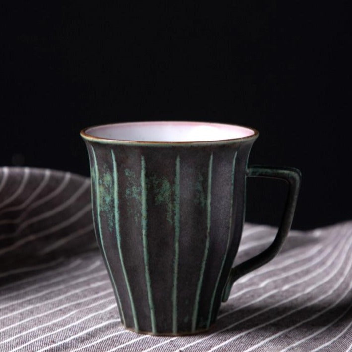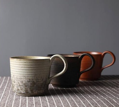 Rustic and chic, our Japanese-inspired pottery mugs are the perfect way to serve your favorite tea or coffee. Featuring unique aged spotted pattern, muted color palette and textured finish, these mugs are a stylish addition to any kitchen countertop.